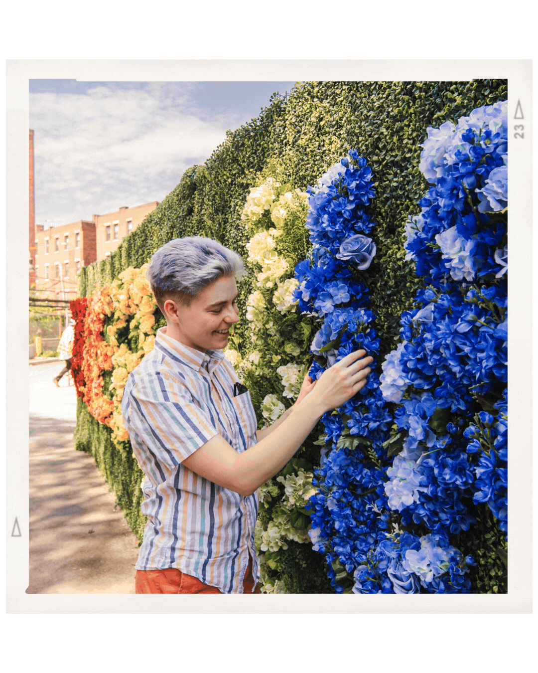 … My fave blooms aren’t just about bouquets, baby. Some of my most fun projects have included creating a 14-foot rainbow-hued installation for Pride month (hiiii queer friends!) and adorning people with BodyBlooms for creative boudoir sessions.